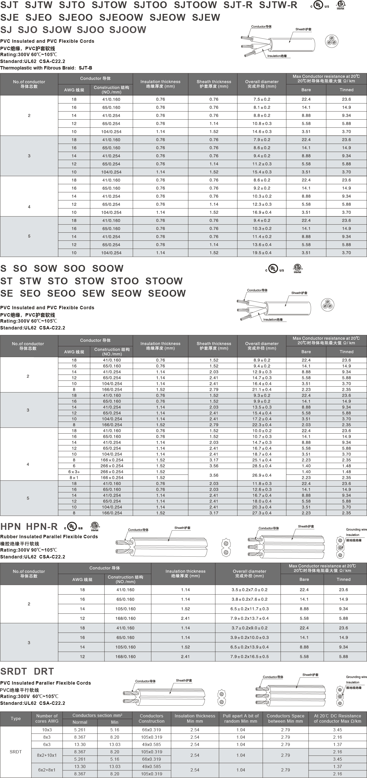 USA和加拿大标准橡套软线